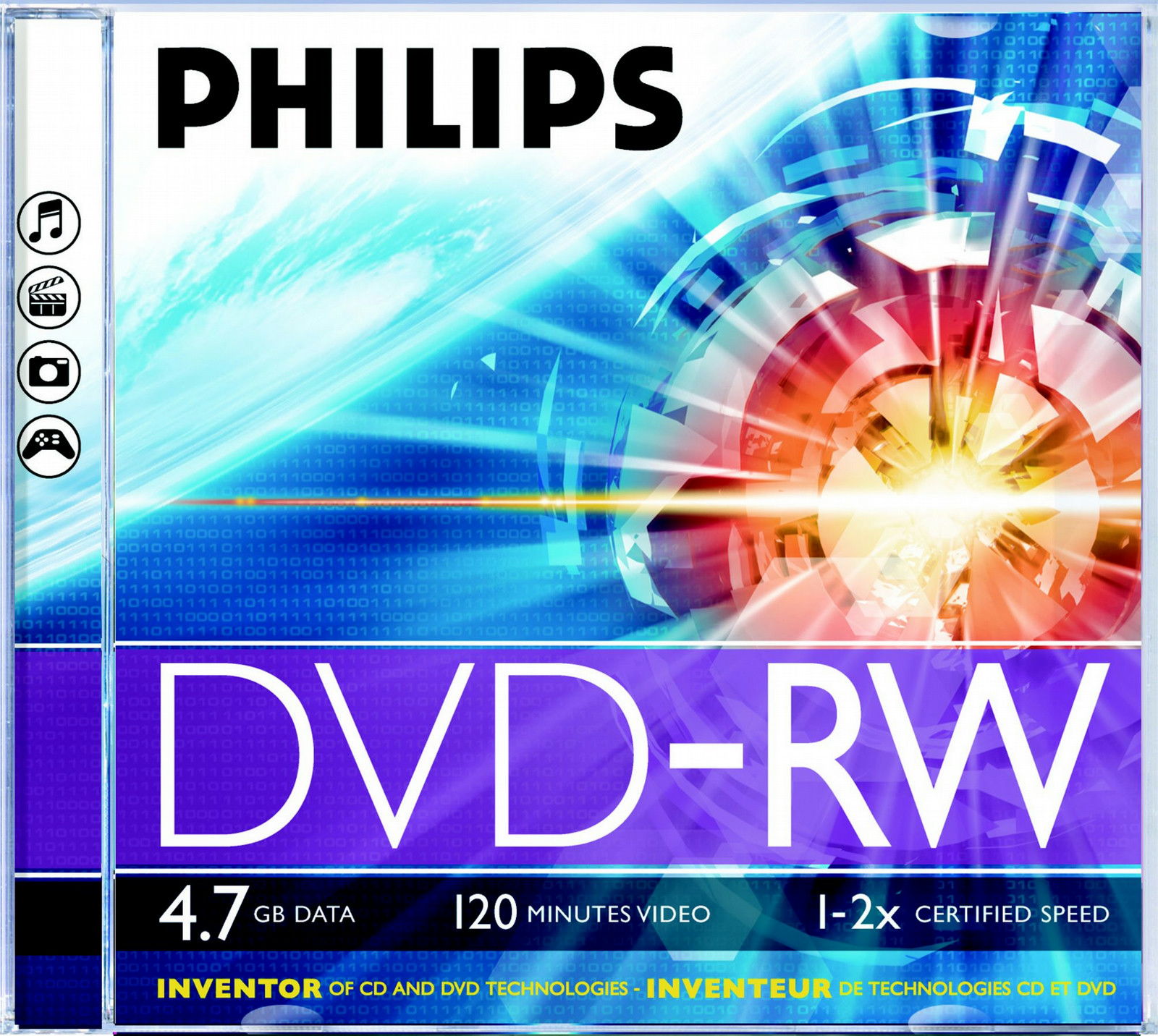 Inventor of CD and DVD technologies. 4.7 GB/120 min 2 x