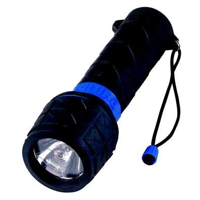 - Rubber housing protects flashlight from splashing water
