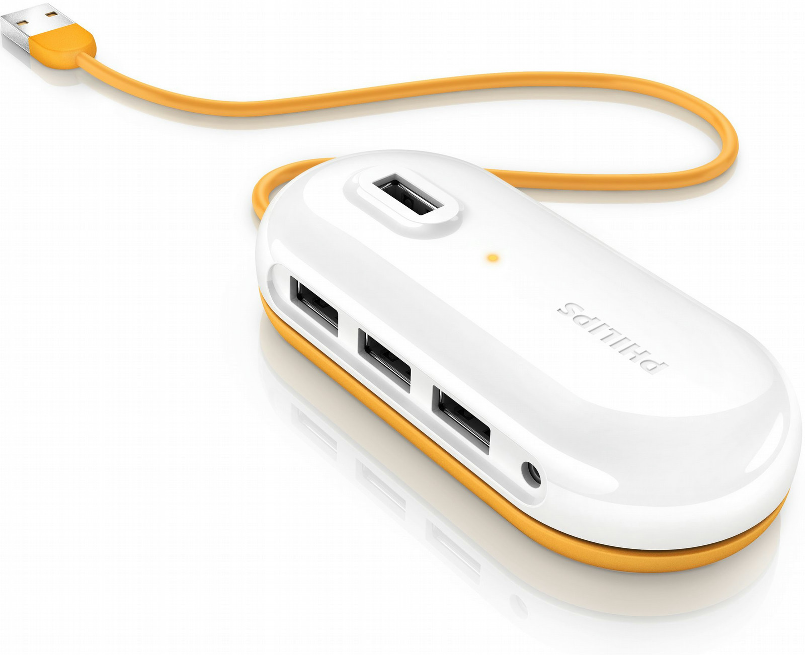 With 3 side ports and 1 quick access top port plus a wraparound cable, you can use your USB hub and carry around easily. This hub connects to mains power and so you can connect high power devices or even charge your mobile phone or MP3.