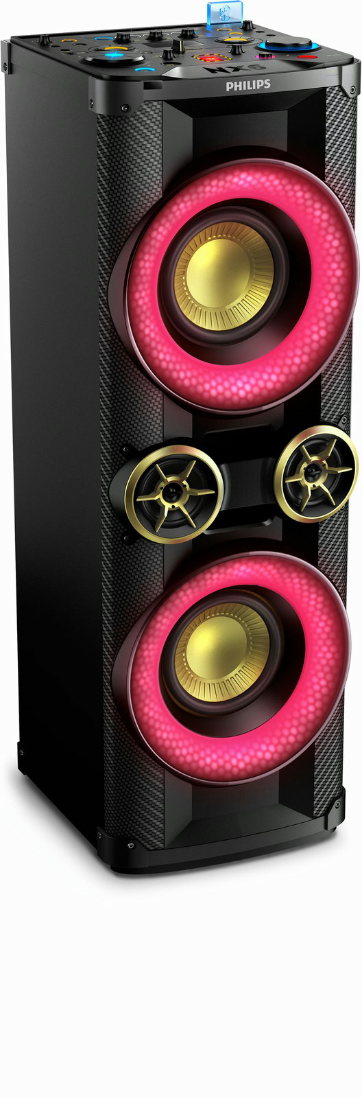 - NX bass button for instant sound boost & light effects