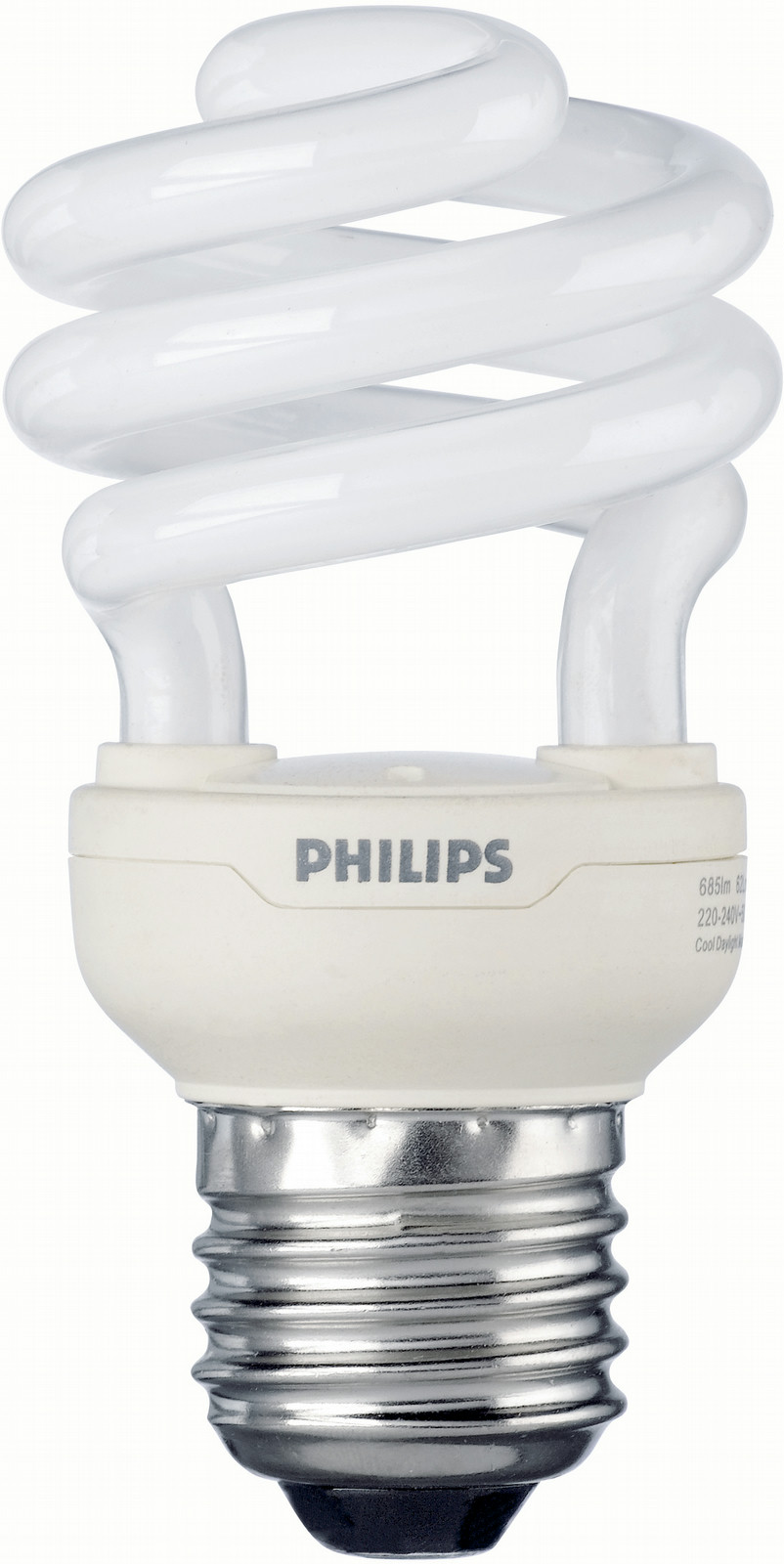 Philips Tornado ESaver T2. Fitting/cap type: E27, Light colour: Cool white, Colour of product: Silver, White. Energy efficiency class: A, Input voltage: 220 - 240, Input frequency: 50 - 60