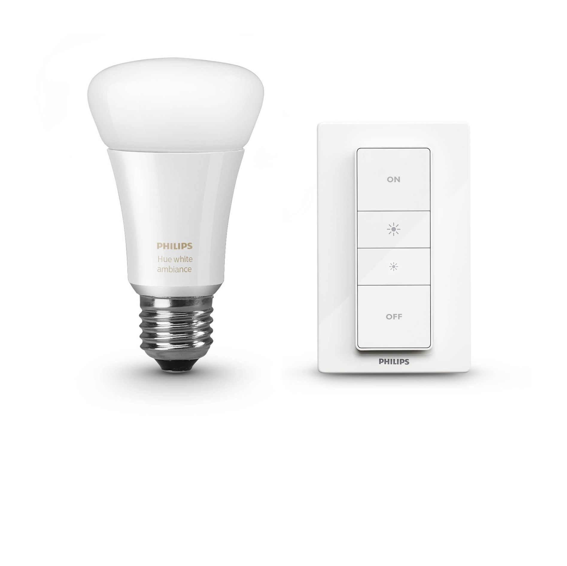 The Philips Hue light recipe kit combines a wireless dimmer switch and a White Ambiance LED bulb to give you light that helps you relax, read, concentrate and energise. Place the switch anywhere and use it as a remote control.