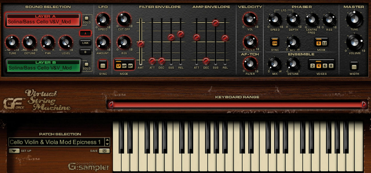 Die Virtual String Machine von GForce bringt die stimmungsvolle Töne über ein Dutzend der besten Vintage-String-Synthesizer, um Ihre persönlichen Studio-Freeman String Symphonizer, Eminent 310, ARP Omni II, ARP-Quartett, Crumar Multiman, Polymoog, Elka Rhapsody, Korg PE2000, Logan String Melody, Eminent Solina, Roland RS202, Yamaha SS30 und vieles mehr. Weit mehr als eine voreingestellte Gerät, lässt die Virtual String Machine Schicht Sie zwei beliebige der 60 Sample-Sets und eine intuitive Anwendung Synthese-Engine, um jeden-als auch als Add-Master Vintage Phaser / Ensemble Effekte. Das Ergebnis ist eine authentische und sehr vielseitigen Texturen, ideal für fast jede Musikrichtung. Mac / PC Stand-Alone-oder Host-Betrieb (RTAS, VST, AU).