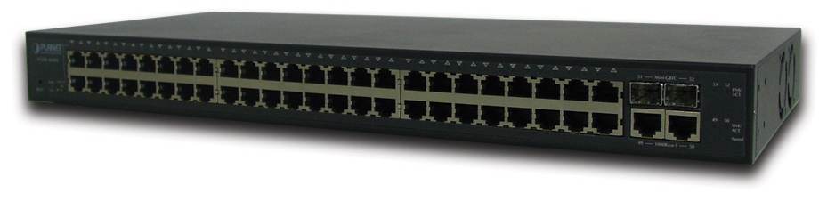 Planet FGSW-4840S. Netzstandard: IEEE 802.3,IEEE 802.3ab,IEEE 802.3u,IEEE 802.3x,IEEE 802.3z. MAC-Adressentabelle: 8000 Eintragungen, Routing-/Switching-Kapazität: 17,6 Gbit/s, Datenrate: 48-10/100Mbps. Produktfarbe: Schwarz, Formfaktor: 1U, Zertifizierung: FCC, CE. Datenpaket-Pufferspeicher: 1,5 MB. Stromverbrauch (typisch): 24 W, AC Eingangsspannung: 100-240 V, AC Eingangsfrequenz: 50/60 Hz