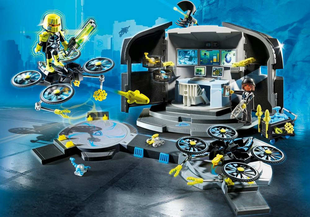 - An einem der beiden schwenkbaren Arme innerhalb des Command Centers kann entweder ein Überwachungssensor oder Dr. Drones ""Assistent"" D-1 (separat erhältlich in Artikel 9254) befestigt werden.
