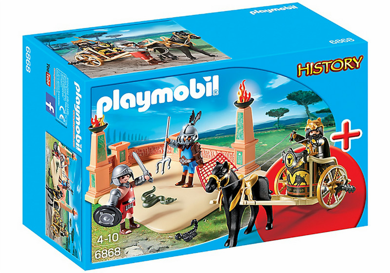 - In den bewaffneten Streitwagen kann das enthaltene Pferd eingespannt werden. Eine Figur kann mittels Fußklemmung im Streitwagen befestigt werden.