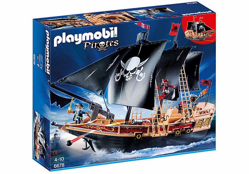 Schwimmfähig, mit Munitionsversteck und mit schussfähigen Kanonen an Deck. Aufrüstbar mit RC-Unterwassermotor 5536 (Ballastgewicht 6241 nötig). Maße: 67 (ohne Heckfahne) x 24 x 52 cm (LxTxH).