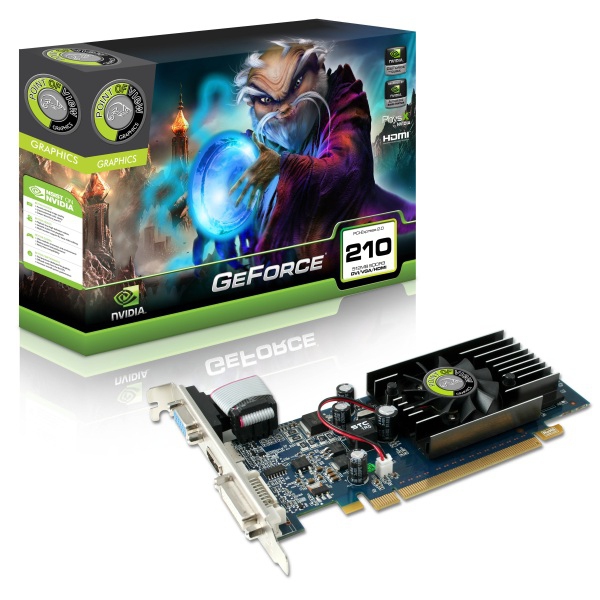 Point of View GeForce 210, 512MB GDDR3. GPU: GeForce 210, Maximale Auflösung: 2560 x 1600 Pixel, Prozessor-Taktfrequenz: 589 MHz. Grafikkartenspeichertyp: GDDR3, Breite der Speicherschnittstelle: 64 Bit, Speichertaktfrequenz: 1600 MHz. Schnittstelle: PCI Express 2.0. Kühlung: Aktiv