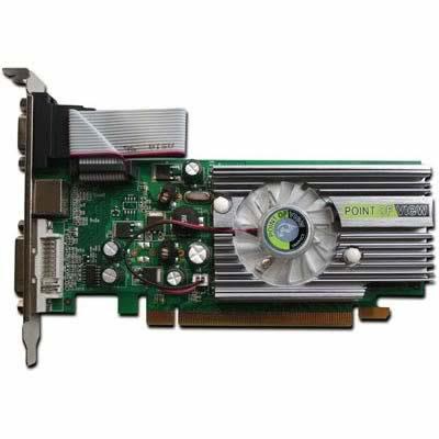 Point of View GeForce 8400GS, 512MB GDDR2. GPU: GeForce 8400 GS, Maximale Auflösung: 2560 x 1600 Pixel, Prozessor-Taktfrequenz: 567 MHz. Grafikkartenspeichertyp: GDDR2, Breite der Speicherschnittstelle: 64 Bit, Speichertaktfrequenz: 666 MHz. Schnittstelle: PCI Express x1. Kühlung: Aktiv