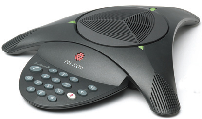 Polycom SoundStation2. Eingangsspannung: 110 - 220, Eingangsfrequenz: 50/60. Abmessungen (BxTxH): 311 x 368 x 64 mm, Gewicht: 800 g