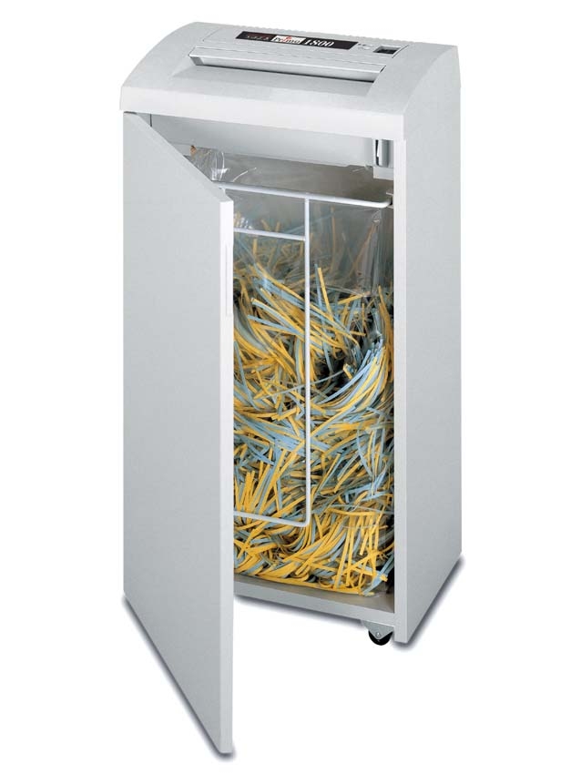 Primo 1800 Office. Aktenvernichter Typ: Strip shredding, Arbeitsbreite: 24 cm, Geräuschpegel: 63 dB. Stromverbrauch (typisch): 440 W. Gewicht: 19 kg. Energiebedarf: 100/115/230 V/ 50-60 Hz, Abmessungen (BxTxH): 401 x 272 x 727 mm