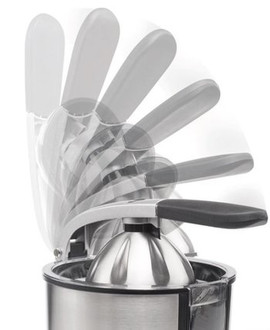 Semi-Professioneller Entsafter mit leicht zu bedienendem Druck-Hebel zum auspressen aller Zitrusfrüchte. Leicht zu reinigen, abnehmbare, spülmaschinengeeignete Teile. Ausgestattet mit einem kraftvollen, geräuscharmen 160W Motor.