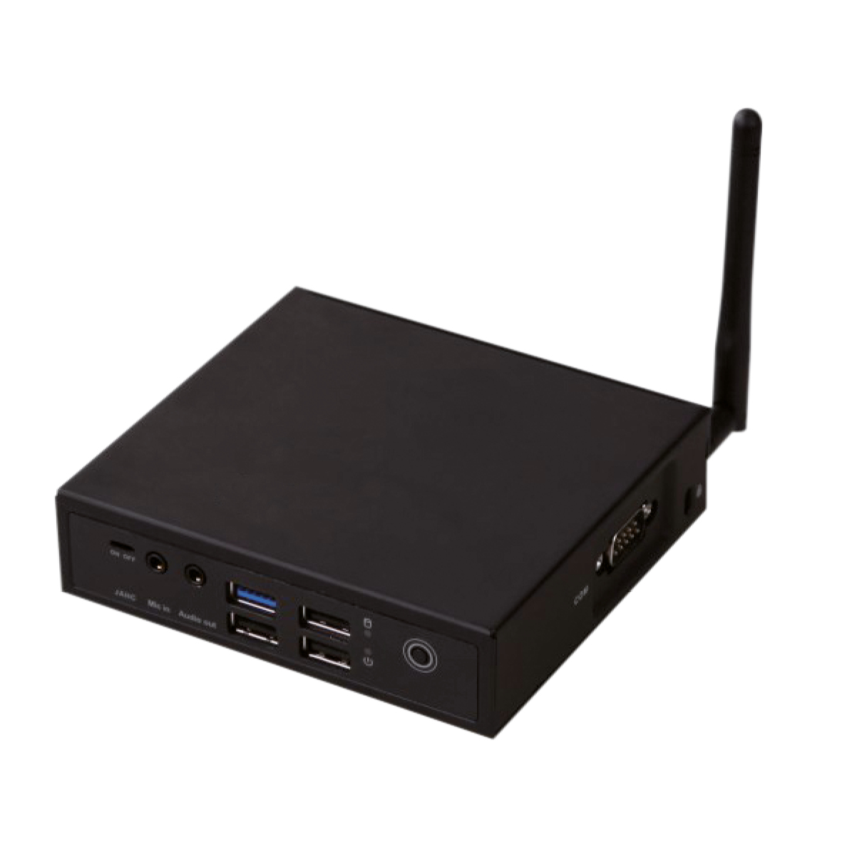 ProDVX IBPC-848 Intel Box PC Intel Atom Quad Core 1,84 Hz 32GB eMMC Flash Windows 8, 10 Linux. Prozessorsockel: BGA 592. Prozessorfamilie: Intel® Atom™, Prozessor-Taktfrequenz: 1,44 GHz, Prozessor: x5-Z8300. RAM-Speicher maximal: 2 GB, Unterstützte Arbeitsspeicher: DDR3-SDRAM. Grafikkarte-Familie: Intel, Grafikkarte: Intel HD Graphics. Produktfarbe: Schwarz, Kühlung: Passiv, Produkttyp: Mini-PC Barebone