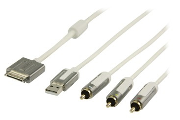 Profigold PROM102. Kabellänge: 1 m, Stecker: 30-pin Dock, 3x RCA + USB A. Produktfarbe: Weiß