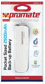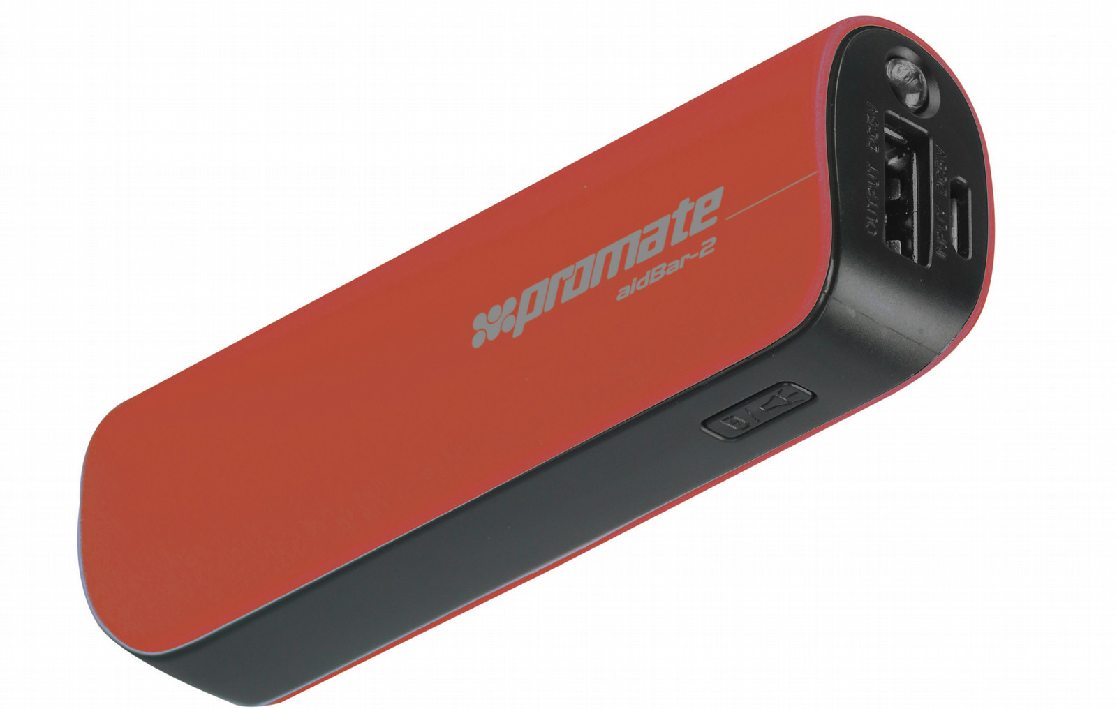 Promate aidBar-2. Produktfarbe: Schwarz, Rot, Gehäusematerial: ABS Synthetik, Aufladekompatibilität: Smartphone. Batterietechnologie: Lithium-Ion (Li-Ion), Batteriekapazität: 2500 mAh, Aufladequelle: USB. Typ des USB-Eingangsanschlusses: Micro-USB. Mitgelieferte Kabel: USB