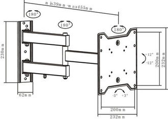 Proper Heavy-Duty Swing Arm TV Bracket for 23''-43". Minimale VESA-Halterung: 75 x 75 mm, Maximale VESA-Halterung: 200 x 200 mm, VESA Montageadapter: 75 x 75,100 x 100,200 x 100,200 x 200 mm. Neigungswinkel: -12 - 12°. Produktfarbe: Schwarz