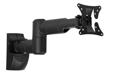 Proper Swing Arm TV Wall Bracket for 19''-28'. Höchstgewichtskapazität: 30 kg, Minimum Bildschirmgröße Kompatibilität: 48,3 cm (19 Zoll), Maximaler Bildschirmdurchmesser: 71,1 cm (28 Zoll). Neigungswinkel: -20 - 20°, Swivel Winkel: 180°. Produktfarbe: Schwarz. Breite: 115 mm, Höhe: 232 mm, Tiefe (min): 8,9 cm