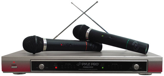 Pyle PDWM2000. Typ: Stage/performance microphone, Mikrofon-Frequenz: 40 - 1500 Hz, Stimmenmagnetspuele Typ: Dynamisch. Übertragungstechnik: Kabellos, Geräteschnittstelle: 6.35 mm (1/4"), Arbeitsfrequenz: 210.15, 215.50, 174.80, 180.80, 212.60, 190.10, 214.20, 193.00. Empfängerdimensionen (B x T x H): 420 x 220 x 45 mm. Energiequelle: Batterie/Akku, Batterietechnologie: Alkali. Produktfarbe: Schwarz