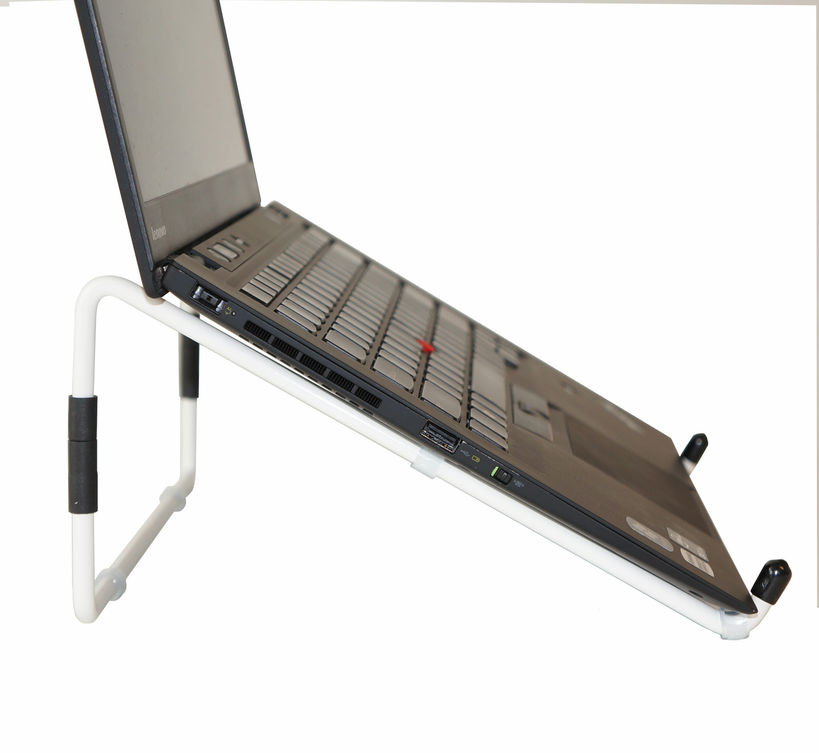 Der ErgoSteel Travel Laptopständer Weiß erhöht den Bildschirm des Laptops. Beim Arbeiten wird damit eine gerade Haltung angeregt. Dadurch werden Nacken und Schultern entlastet.