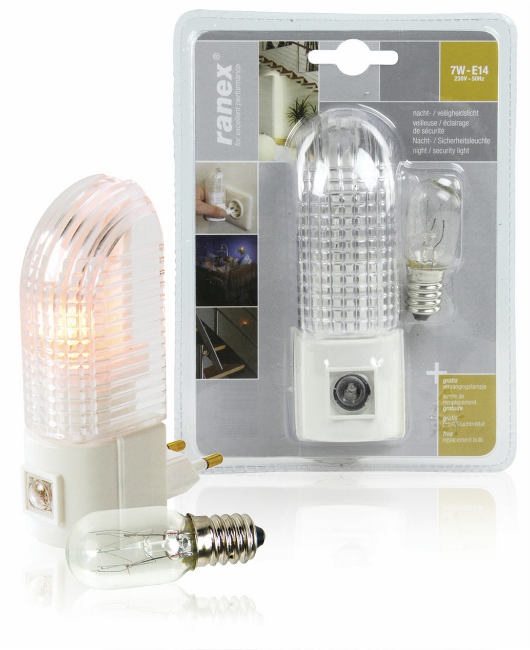 Nachtlicht mit Euro-Stecker und Sensor, inklusive Ersatzleuchtmittel.