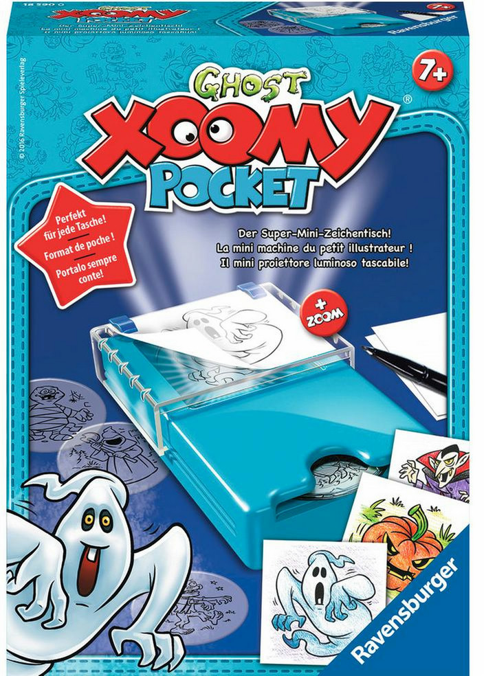 Mit dem kompakten Xoomy® können kleine Illustratoren tolle Figuren und Motive zeichnen. Der Clou daran: die Motive können in zwei Stufen vergrößert werden. Dank seines kleinen Formates lässt sich der Xoomy® Pocket überall mit hinnehmen. Egal ob zu Hause oder unterwegs – Xoomy® lässt die Herzen kleiner Künstler höher schlagen! Also Licht an und los geht’s!