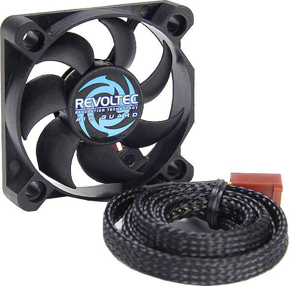 Revoltec Airguard 50. Geräuschpegel (hohe Geschwindigkeit): 25,84 dB. Produktfarbe: Schwarz. Abmessungen (BxTxH): 50 x 50 x 10 mm, Energiebedarf: 7 - 12V, Stecker: 3-Pin