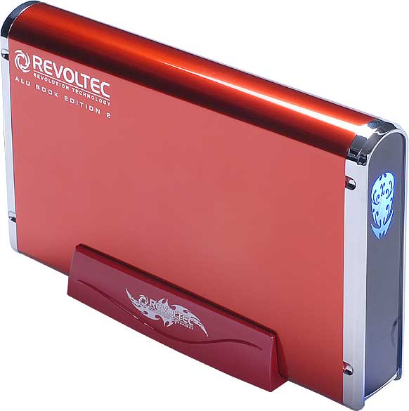 Revoltec Alu Book Edition 2 Ruby Red 3.5". Größe des Speicherlaufwerks: 3.5 Zoll, Unterstützte Speicherlaufwerk-Schnittstellen: IDE/ATA. Schnittstelle: USB. Produktfarbe: Rot, Material: Aluminium. Abmessungen (BxTxH): 198 x 125 x 33 mm