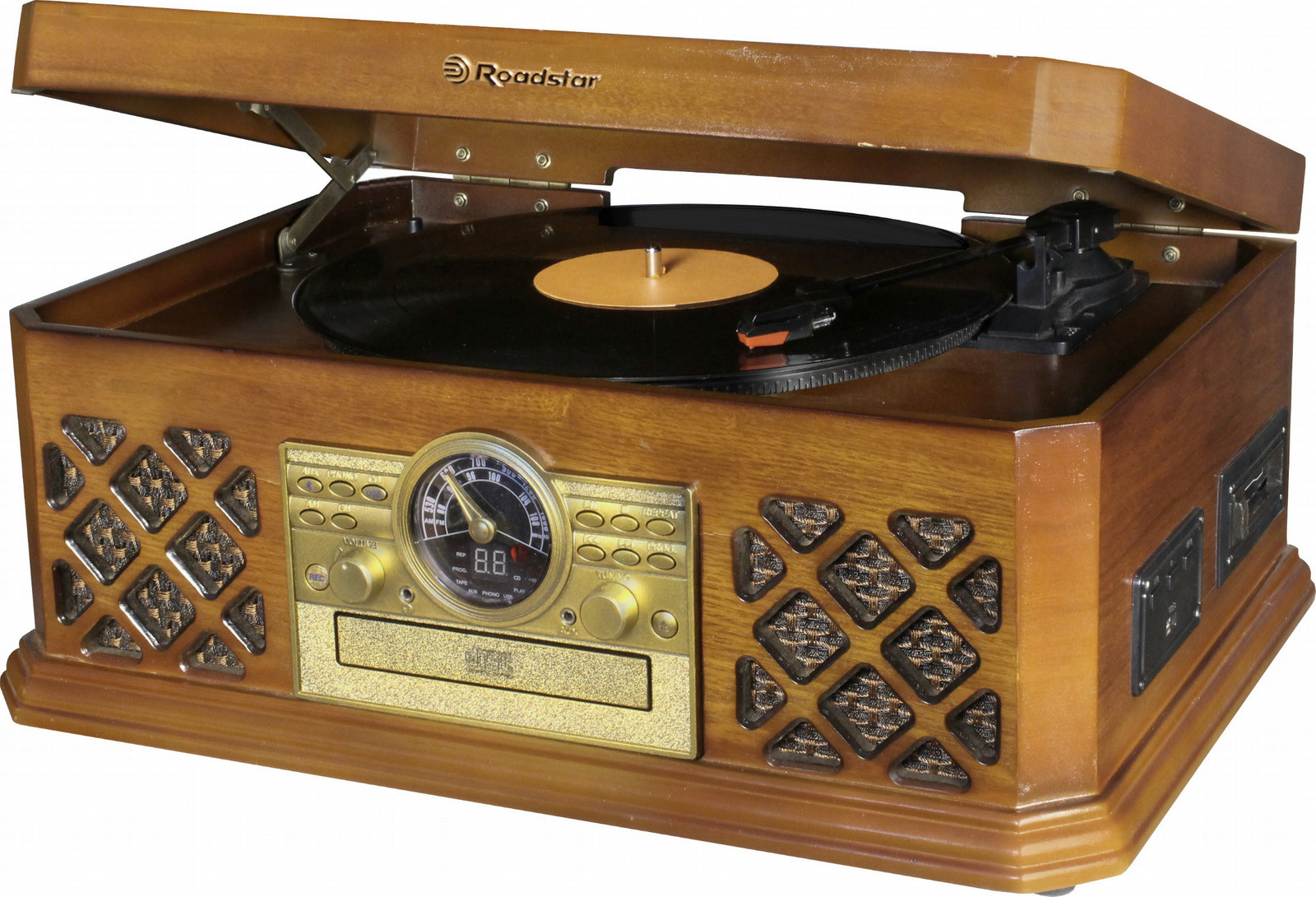 Roadstar HIF-1690BT. Musik Energie: 32 W. Netzteiltyp: AC. Produktfarbe: Holz. Gehäusematerial: Holz. Abmessungen Gerät (B x H x T): 508 x 365 x 240 mm, Gewicht: 7,2 kg