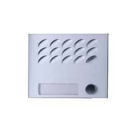 Türsprechmodul für modulare Türstation Mody. Mit einer Klingeltaste. Mit Beleuchtung. Eine potentialfreie Multifunktionstaste (z.B. Lichttaste). Für den Einbau von MD30 Türfreisprecheinrichtungen. 124x90x18 mm. Aluminium grau eloxiert. Klingeltaste aus Edelstahl. Zusatztaste aus Kunststoff.