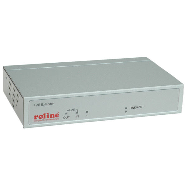 ROLINE 2-port PoE extender<br />Der 2-Port PoE-Extender ist für die Verlängerung der Distanz zwischen PSE (Power Sourcing Equipment) und PD (Powered device) ausgelegt.<br />Über einen Port kommt das Signal herein und läuft auf dem zweiten Port mit PoE weiter.<br />Ebenso für weitere 100 m pro Extender und Cascadefür längere Strecken über Cat.5 Kabel. Er wird von einem PoE-Switch oder PoE-Injektor mit Strom versorgt, so dass keine zusätzliche Stromversorgung erforderlich ist.<br />Die Installation erfolgt per Plug and Play - Er ist einfach in das Netzwerk-Umgebung zu integegrieren.<br /><br /><ul><li>Verlängert die Distanz zwischen PSE und PD um weitere 100 m</li><li>Anschlüsse: 1x LAN-Port In für PoE-Injektor (PSE), 1x LAN-Ausgang für PoE-Splitter (PD)</li><li>IEEE 802.3af PoE-Standard</li><li>Ausgangsspannung: 1 Port 48V/DC</li><li>Keine zusätzliche Stromversorgung erforderlich</li><li>Gehäuse: Metall</li><li>Abmessungen (LxBxH): 130 × 77 × 24 mm</li></ul><br /><ul><li>Inhalt: PoE-Extender, Bedienungsanleitung</li></ul>.