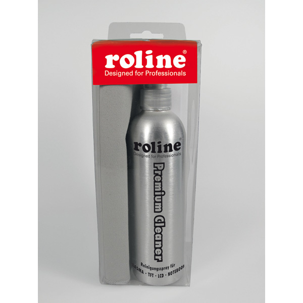 ROLINE Premium Cleaner - Spezial-Reinigungsspray für Plasma Bildschirme, TFT- / LCD-Monitore und Notebooks<br /><ul><li>250 ml Reinigungsspray in hochwertiger Aluminiumflasche</li><li>hochwertiges Mikrofasertuch, 40 x40cm, grau</li><li>Flüssigkeit enthält keinen Alkohol (nicht brennbar), enthält Antistatikum - nicht schmierend</li><li>Umweltfreundlich</li></ul><br />Anwendungshinweise:<br />Bei der Reinigung muss Ihr Gerät ausgeschaltet (Netzstecker ziehen) und abgekühlt sein. Flüssigkeit auf das beiliegende Mikrofasertuch sprühen und Touch Screen reinigen, anschließend mit trockener Seite nachpolieren. Darf nicht in die Hände von Kindern gelangen..