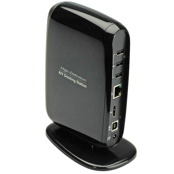 Die Audio/Video Docking Station ist eine perfekte Lösung für ein Notebook zur Erweiterung der I/O Ports. Mit nur einem USB Port am Notebook, können USB Geräte (wie Drucker oder Digitalkamera), LAN, HDMI-Monitor, Mikrofon und Lautsprecher angeschlossen werden.<br /><br /><ul><li>Verbindung zum Notebook über USB</li><li>Kompatibel zu USB 2.0 und 1.1</li><li>HDMI Monitor Ausgang für Full HD Video Auflösung bis 1920 x 1080</li><li>Modus für Clone oder Extended Desktop</li></ul><br />Anschlüsse auf der Frontseite:<br /><ul><li>1x USB 2.0 port</li><li>2x Audio (Mikrofon, Lautsprecher)</li></ul><br />Anschlüsse auf der Rückseite:<br /><ul><li>1x USB Typ B zum Anschluss an das Notebook</li><li>1x HDMI Type A Port für Video Output</li><li>3x USB 2.0 Port</li><li>1x 10/100 Ethernet LAN Port (RJ45)</li></ul><br /><ul><li>Lieferumfang: Dockingstation, Netzteil, USB Kabel (1 m), CD, Manual</li></ul>.