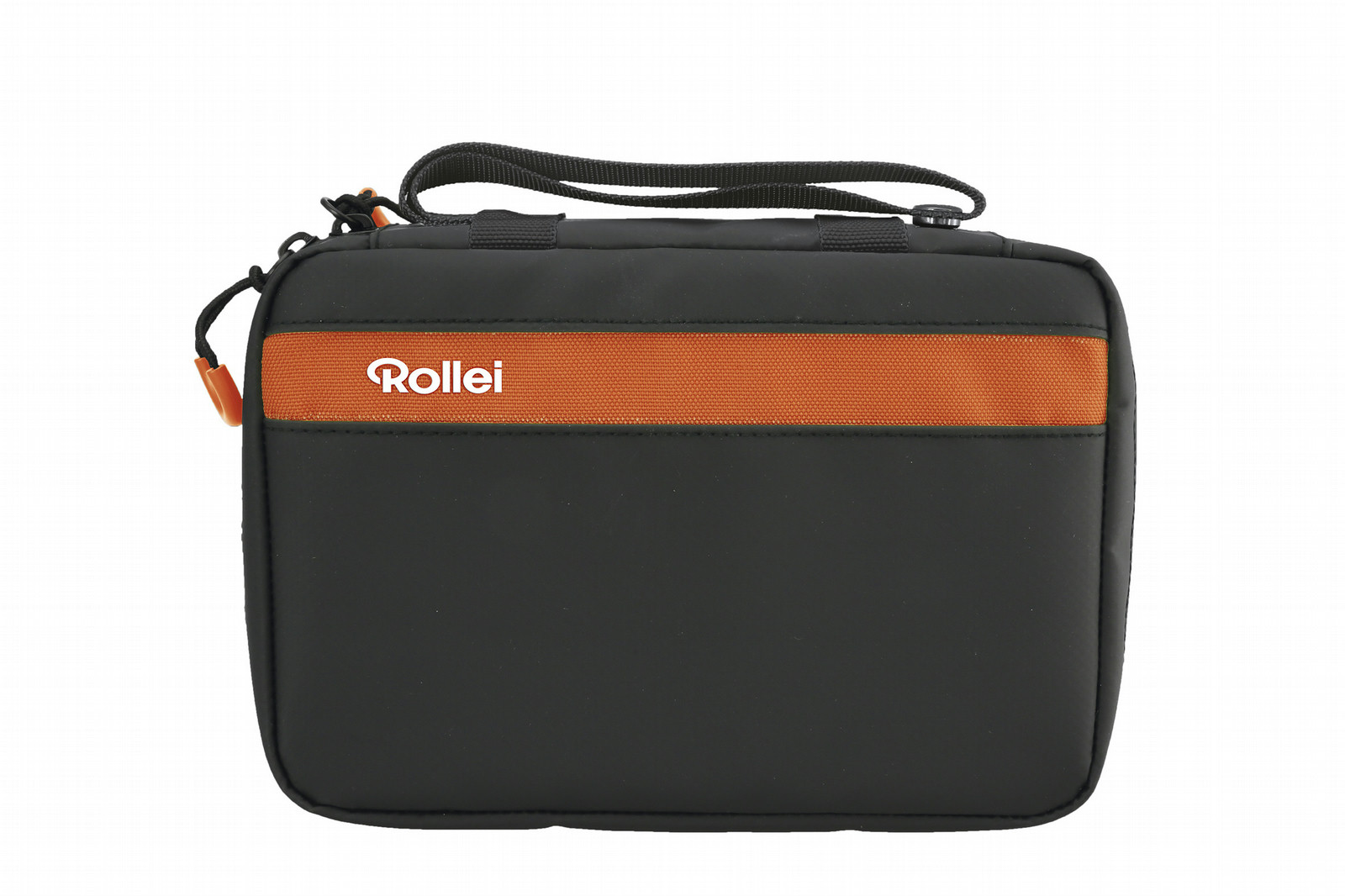 Die Actioncam Tasche von Rollei ist wasserdicht und daher auch bei schlechten Wetterbedingungen zu gebrauchen. Außerdem behält die Polsterung aus robustem EPE-Schaum auch bei starken Belastungen ihre Form. Die zahlreichen Fächer der Actioncam Tasche ermöglichen eine übersichtliche Unterbringung von Kamera und Kleinzubehör. Im Außenfach auf der Rückseite können schnell kleinere Gegenstände verstaut werden. Ein verstellbarer und abnehmbarer Schulterriemen erleichtert das Tragen. Die Tasche ist das optimale Zubehör für Actioncams der Marken Rollei und GoPro. Sie erhalten das Produkt in den Farben Schwarz-Blau oder Schwarz-Orange. Es hat ein Gewicht von 258 Gramm und ist dank den verstellbaren Riemen angenehm zu transportieren.