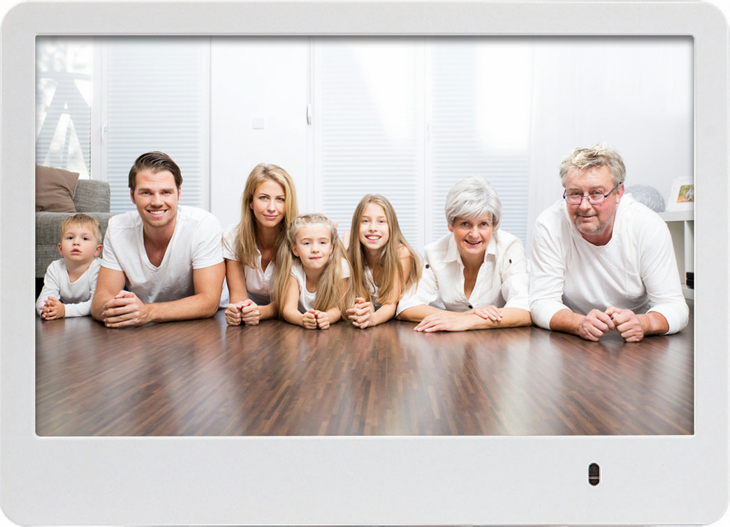Sie können Ihre Speicherkarte im SD-/SDHC-Format direkt aus Ihrer Kamera in den Digitalen Bilderrahmen stecken, passende Übergänge wählen und eine stimmungsvolle Diashow erstellen. Das Display mit einer Auflösung von 1280 x 768 Pixeln und einem Kontrastumfang von 800:1 zeigt sowohl JPGs (JPEGs) als auch BMPs direkt an. DPFs gehören zu den besonders aufmerksamkeitsstarken Möglichkeiten, Fotos, Grafiken oder sogar speziell gelayoutete Unternehmensbotschaften zu präsentieren. Oder haben Sie schon mal den Inhalt eines Digitalen Bilderrahmens NICHT betrachtet?