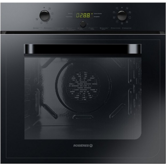 Rosieres RF6312PPN. Ofentyp: Electric oven, Gesamtes Fassungsvermögen Garraum Ofen: 55 l, Insgesamt Backofen Leistung: 2000 W. Produktfarbe: Schwarz, Kontrolltyp: Rotation, Kontrollposition: Vorderseite. Energie-Effizienzklasse: A, Energieverbrauch (konventionell): 0,79 kWh, Energieverbrauch (erzwungene Konvektion): 0,98 kWh. Breite: 596 mm, Tiefe: 540 mm, Höhe: 590 mm