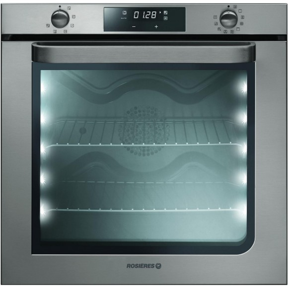 Rosieres RFA 65 IN. Ofentyp: Electric oven, Gesamtes Fassungsvermögen Garraum Ofen: 73 l, Insgesamt Backofen Leistung: 3400 W. Produktfarbe: Edelstahl, Kontrolltyp: Knöpfe, Berührung, Kontrollposition: Vorne oben. Timer-Typ: Digital. Energie-Effizienzklasse: A-20%, Energieverbrauch (konventionell): 0,9 kWh, Energieverbrauch (erzwungene Konvektion): 0,8 kWh. Breite: 595 mm, Tiefe: 546 mm, Höhe: 595 mm