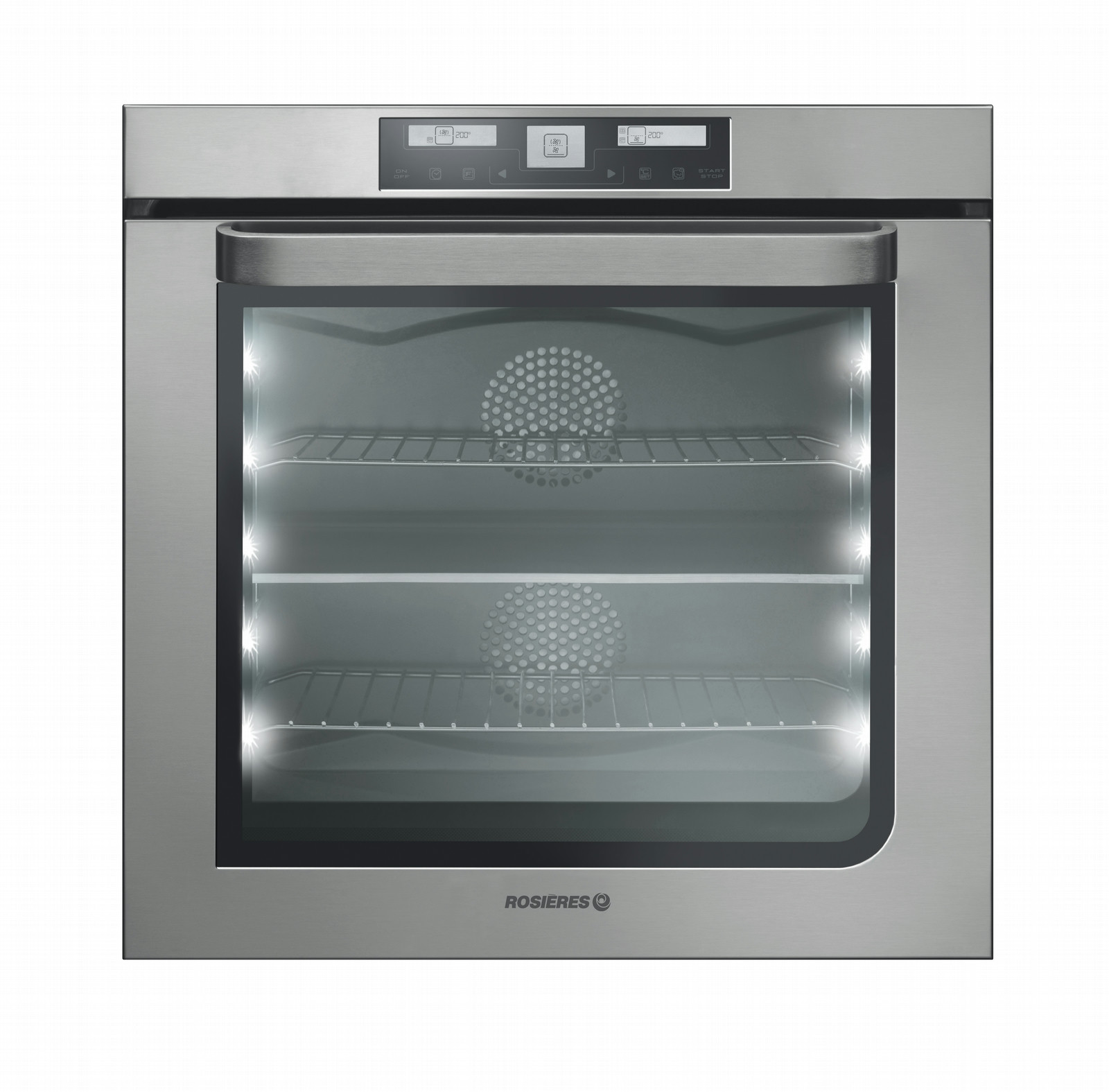 Rosieres RFA96VIN. Ofentyp: Electric oven, Innenkapazität des 1. Backofens: 73 l. Produktfarbe: Silber, Kontrolltyp: Sensor, Display-Typ: LCD. Breite: 560 mm, Tiefe: 550 mm, Höhe: 580 mm