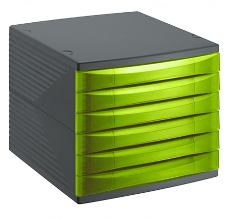 Die Bürobox QUADRA ist aus robustem und dabei äusserst leichtem Kunststoff gefertigt. Sie enthält 6 Schubladen, die mit einer Auszugssicherung versehen sind. Aufgrund einer speziellen Stapelvorrichtung lassen sich mehrere Boxen einfach übereinander stapeln - auf diese Weise ist das Ordnungssystem beliebig erweiterbar. Die dreidimensionale Formgebung der Schübe sorgt nicht nur für eine bequeme Handhabung, sondern wirkt darüber hinaus modern und ästhetisch. Erhältlich ist die Bürobox QUADRA auch mit 4 sowie mit 8 Schubladen. Die verschiedenen Farbvarianten fügen sich elegant in jede Bürolandschaft ein. Verbannen Sie schwer überschaubare Papierstapel von Ihrem Schreibtisch und sparen Sie durch die übersichtliche Aufbewahrung Ihrer Unterlagen Zeit und Nerven!