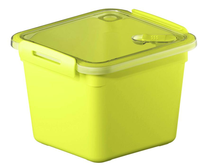 Aufeinander abgestimmte Farben und Symbole, die das Zusammenstellen von Deckel und Unterteil erleichtern; Einfache Handhabung mit zur zwei Klicks; Platzsparend, da sowohl Deckel wie Container genestet werden können