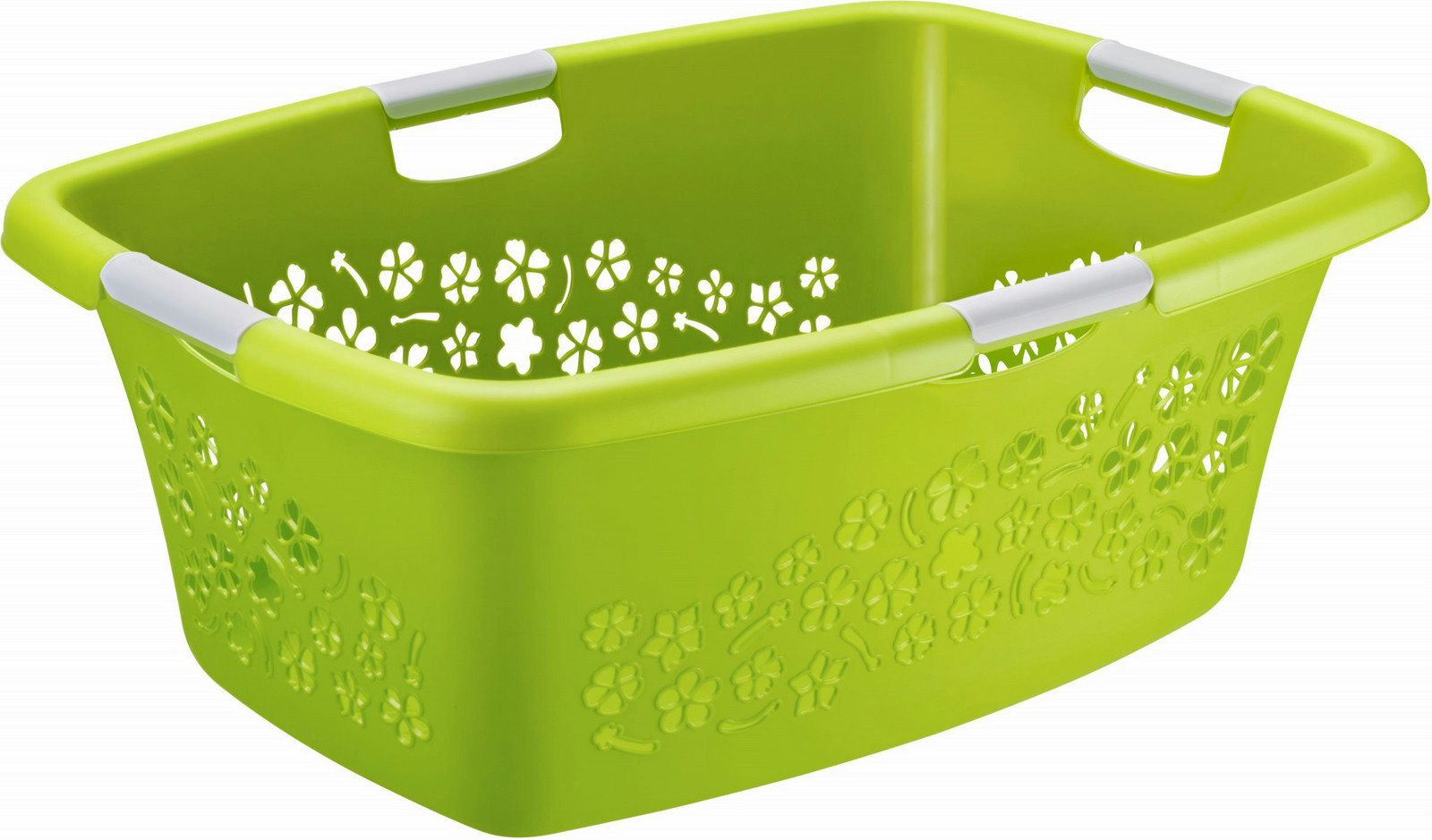 Mit den Massen 651 x 486 x 262 mm und einem Fassungsvolumen von 50 l ist der dekorative Wäschekorb FLOWERS ein echtes Vielseitigkeitstalent. Hinzukommend überzeugt er mit seiner Herstellung aus schadstofffreiem Kunststoff. Die hochwertige Ausführung der Produktlinie FLOWERS wird mittels eines eindrucksvoll polierten Blumendesigns hervorgehoben. Der Rand des Wäschekorbs weist eine leicht abgerundete, geschwungene Kontur sowie vier komfortable Tragegriffe auf. Bei Nichtgebrauch lassen sich die Wäschekörbe der Serie FLOWERS kompakt ineinander stapeln. Die hohe Qualität der Haushaltsprodukte des Herstellers Rotho wird durch eine zwanzigjährige Haltbarkeitsgarantie und ein angemessenes Preis-Leistungs-Verhältnis definiert. Neben der hier beschriebenen Grösse sind weitere Produktvarianten erhältlich. So können Ausführungen des Wäschekorbs FLOWERS mit 25 l und 50 l Fassungsvolumen, in verschiedenen Farben, mit ausgestanztem Blumendekor und zwei Tragehilfen erworben werden.