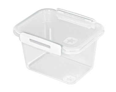Mit wenigen Handgriffen kann die hochtransparente und handliche Kühlschrankdose geöffnet und wie der verschlossen werden.