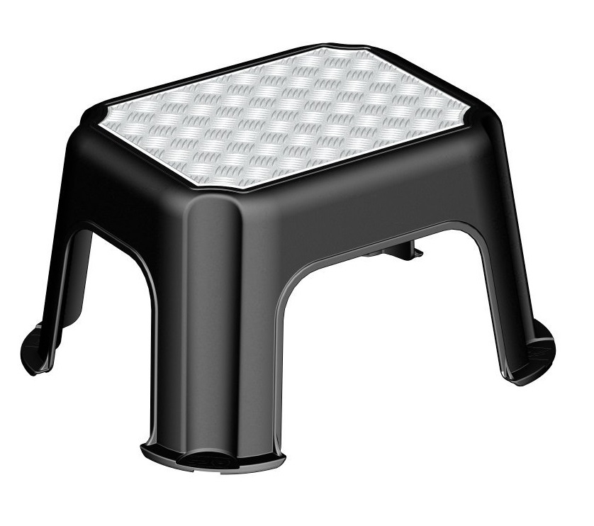 Obwohl der Trittschemel PASO von Rotho beachtliche 150 Kilogramm tragen kann, wiegt er selbst nur 810 Gramm. Gefertigt aus einem Guss, ist der 431 x 358 x 238 mm (LxBxH) messende Schemel besonders stabil und robust, denn Naht- und damit Schwachstellen fehlen völlig. Durch die breiten rutschhemmenden Füsse steht der Schemel auf allen Untergründen sicher und fest, selbst wenn diese nicht ganz eben sind. Sie selbst stehen auf der Metallfläche mit Riffelblech Optik auch besonders sicher und rutschfest.