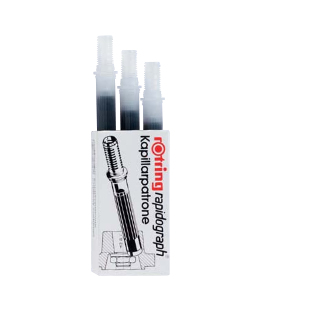 Innovative Patrone mit Tuschwendel, so dass der Rapidograph bei Austasch der Patrone gleichzeitig eine frische, neue Tuschewendel und ein neues Druckausgleichssystem erhält. Dies garantiert eine einfache Pflege. Tusche kann bis auf den letzten Tropfen genutzt werden. Packung mit drei Patronen. Nicht zur Anwendung auf der Haut, inklusiv Tattoos.