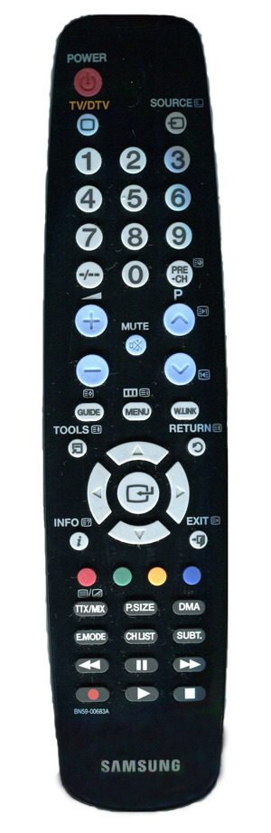 Samsung BN59-00683A. Schnittstelle: IR Wireless, Produktfarbe: Schwarz, Fernbedienung Nutzung: Audio, Home cinema system, TV. Eingangssignal: Drucktasten