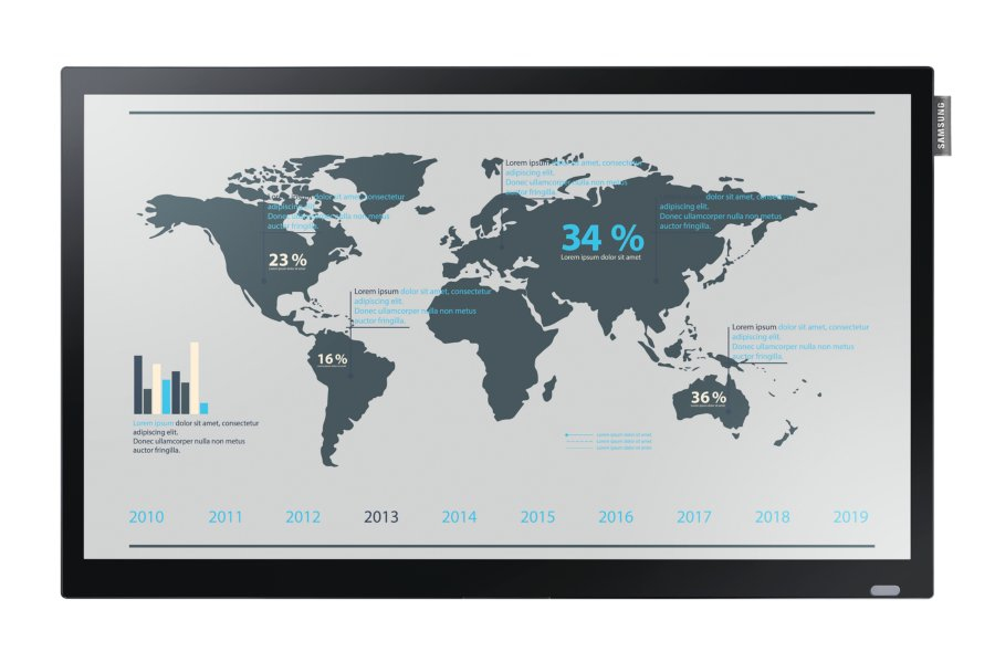 Samsung hat das Informationssystem DB22D-T mit verschiedenen Funktionen ausgestattet, die überragende Bilder in FHD-Qualität gewährleisten und einen maximalen Eindruck erzielen. Das Publikum sieht dank einem extrem breiten Betrachtungswinkel aus praktisch jeder Position klar auf den WVA-Schirm (Wide Viewing Angle). Darüber hinaus können verschiedene Bildmodi für eine Vielzahl von Umgebungsbedingungen verwendet werden, um die optimale Qualität für den jeweiligen Standort zu erzielen. Dazu gehören reichhaltige Farben und detaillierte Strukturen zum Bewerben von Produkten in Geschäften oder Einkaufszentren, scharfe Texte oder Videos zur Präsentation von Informationen und Marken in Büros oder Schulen, sowie geplante Änderungen bei Texten in Fahrplänen und Videowerbung in Bahnhöfen.