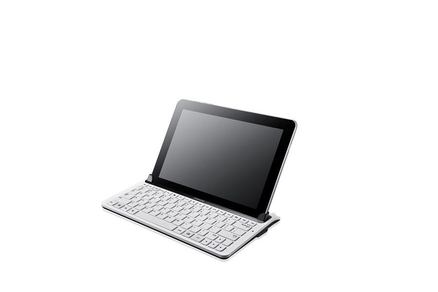 Samsung ECR-K14UWE. Produktfarbe: Weiß, Tastatur Formfaktor: Mini. Kompatibilität: Galaxy Tab 10.1. Geräteschnittstelle: Docking-Anschluss