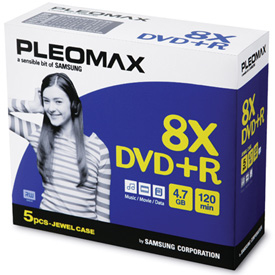 Samsung Pleomax DVD+R 4.7GB, Jewel Case 5-pk. Kapazität ohne Komprimierung: 4,7 GB, Menge pro Packung: 5 Stück(e), Aufnahmezeit: 120 min