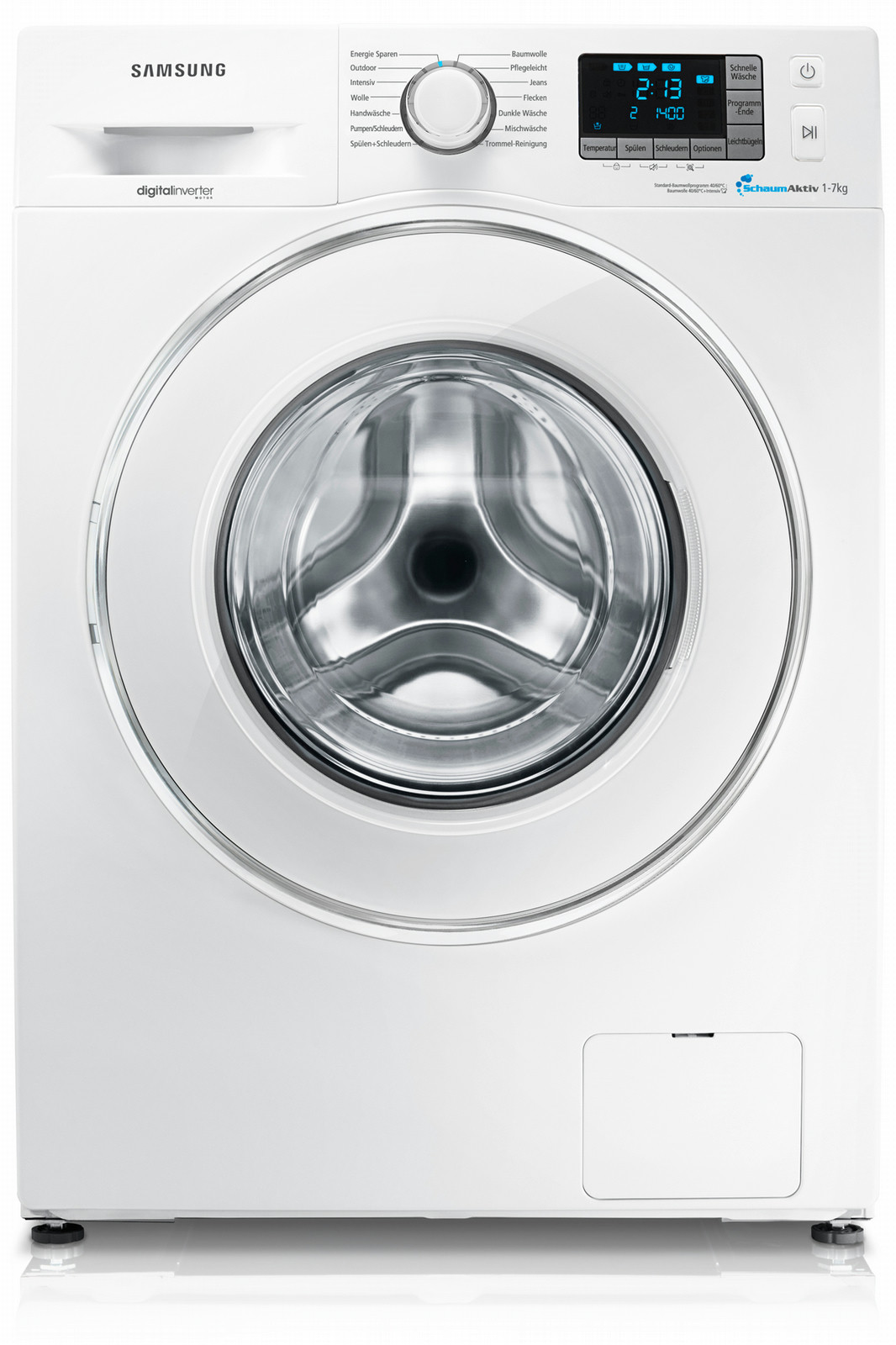 Jetzt können Sie mit kaltem Wasser genauso effizient waschen wie mit warmem Wasser - Die Waschmaschine von Samsung mit der Schaum Aktiv-Technologie. Eine Revolution beim Waschen, die bei jeder Ladung Energie spart. Cool waschen. Energie sparen.