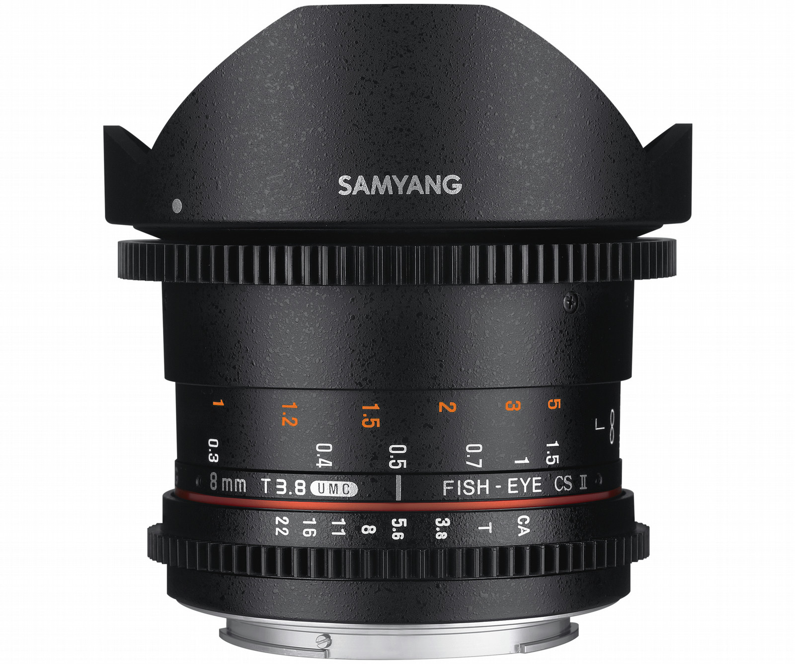 Samyang 8mm T3.8 VDSLR UMC Fish-eye CS II. Komponente für: SLR, Objektiv-Struktur: 10/7, Linsen Typ: Wide fish-eye lens. Kompatible Produkte: Canon. Produktfarbe: Schwarz