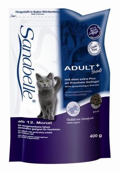 Sanabelle ADULT Strauß mit dem extra Plus an frischem Geflügel (min. 20 %) und ohne glutenhaltiges Getreide hergestellt, ist eine bekömmliche und schmackhafte Vollnahrung zur bedarfsgerechten Ernährung ausgewachsener Katzen, vorzugsweise von Katzen die überwiegend im Haus leben.